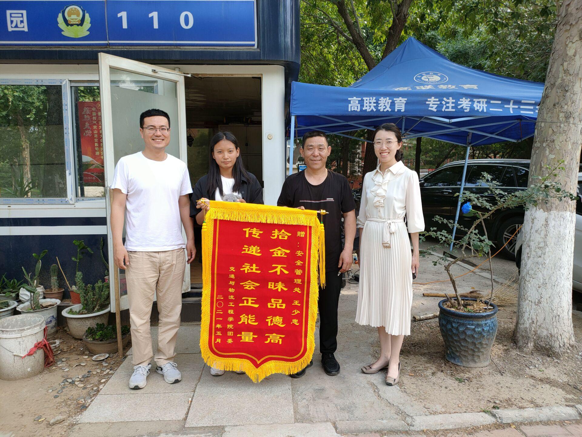 据悉,5月29日,交控191班阿珍同学不慎将电脑、书包等贵重物品遗失在学校教学楼附近,学校安全管理处王少忠老师巡查校园时捡到遗失物品,并主动联系学院和同学,将物品归还,减少了同学的财产损失。