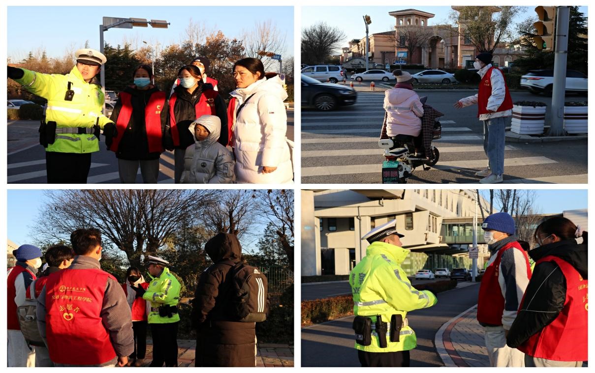 组织开展文明交通志愿服务。学院青葵志愿服务队联合长清区交警大队共同组织开展“文明交通,你我先行”志愿活动。活动中,志愿者们协助执勤交警指挥交通,引导行人和非机动车辆遵守交通规则,宣讲交通法规常识,做到人人参与文明交通,人人践行交通文明。