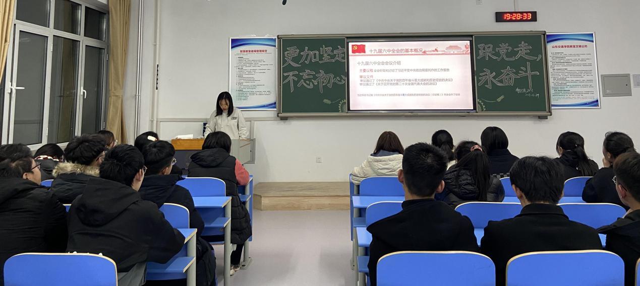 为加强学生对党的十九届六中全会的理解和认识,学院2021级全体同学于11月25日在机电楼开展了以“更加坚定跟党走,不忘初心永奋斗”为主题的政治学习活动。
