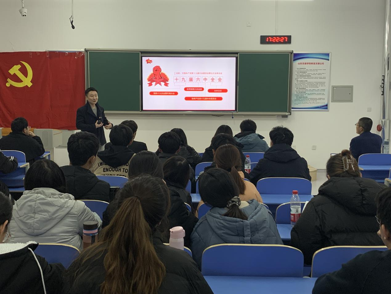 12月9日,学院党委副书记宁兴旺在机电楼A316开展“党的十九届六中全会精神 ”主题宣讲,学生第二支部全体党员参加。