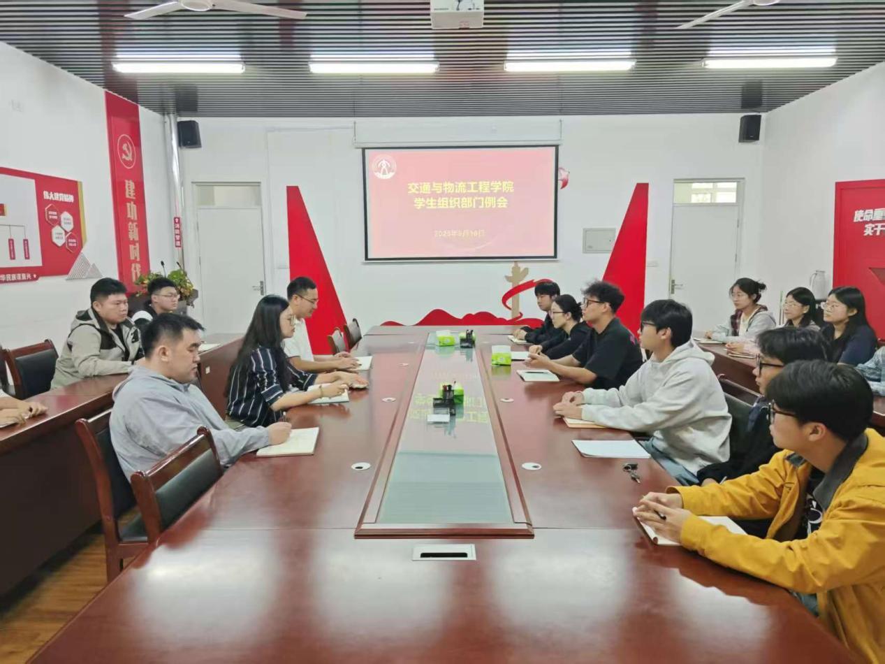 为梳理工作流程、强化部门协同、夯实安全基础、明晰发展方向,9月17日,交通与物流工程学院学生组织部门例会在学院会议室举行,学院党委副书记孙晨、辅导员及学生组织部门代表参会。
