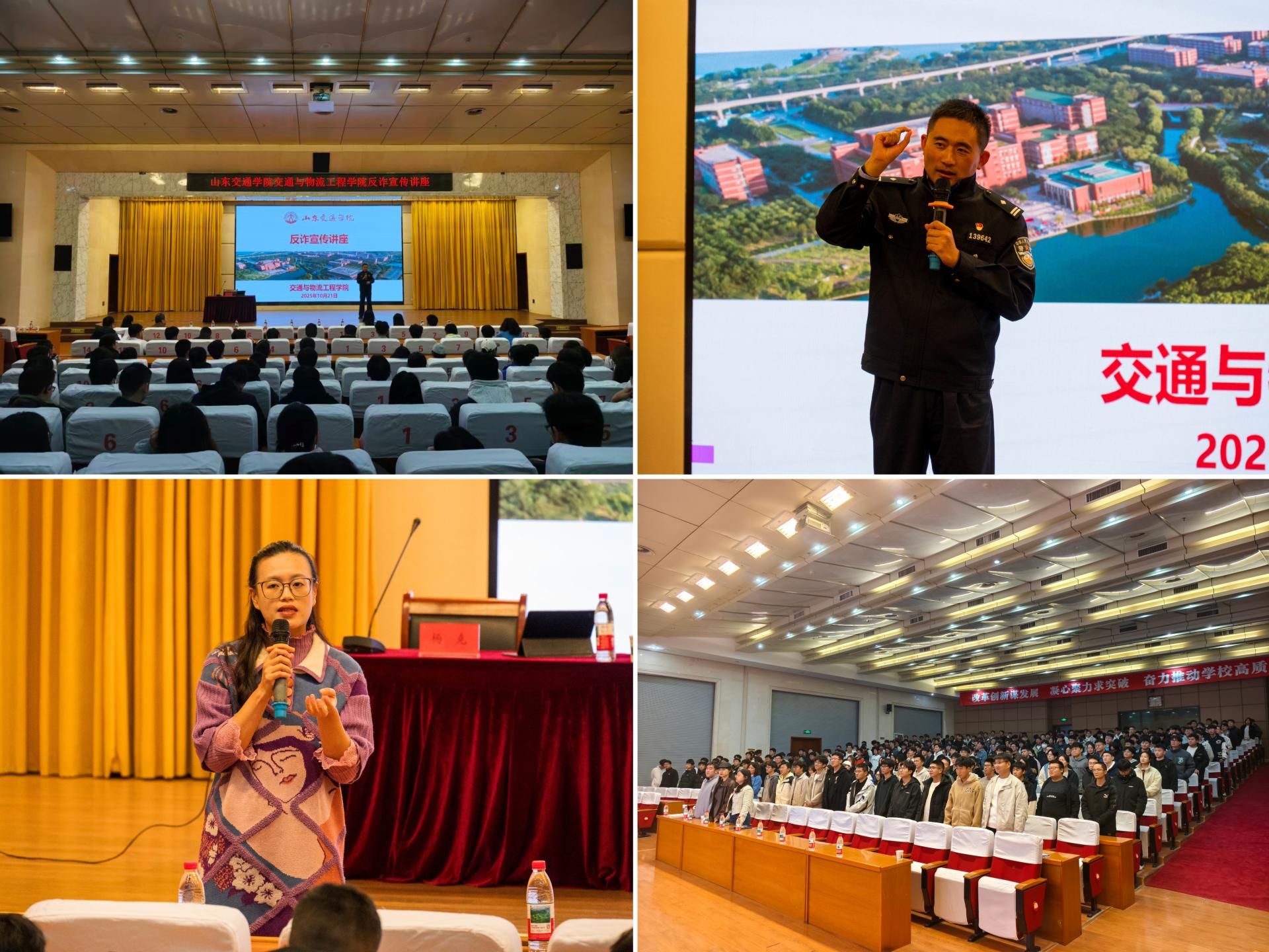 为进一步提升大学生防范电信网络诈骗的意识和能力,有效遏制校园诈骗案件发生,10月21日,山东交通学院交通与物流工程学院在学术报告厅成功举办反诈宣传讲座。学院党委副书记孙晨主持活动,学生工作办公室主任林森及各年级辅导员出席。本次讲座在学校安全管理处的大力支持下,特邀长清区公安分局反诈中心杨克警官担任主讲人,为同学们带来专业的反诈知识分享。