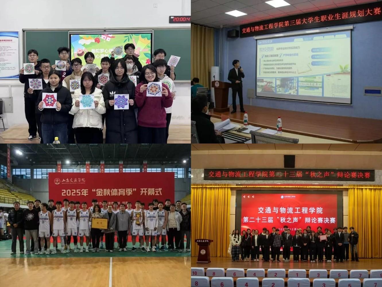 (一)体系协同,“三全育人”结硕果。推动全员全过程、全方位育人落地生根。深化课程思政,获批省级示范中心、示范课程多项,让专业知识传授与价值引领同频共振。持续打造“交通物流文化节”“心理嘉年华”“廉洁文化月”等品牌活动,将思政教育融入专业学习、社会实践、校园文化各环节。学院团委多次获评“红旗团委”,社会实践团队荣获全国“优秀团队”、全国大学生“千校千项”网络展示活动“团队风采”奖、“青春影像”奖、全国大学生社会实践“镜头中的三下乡”优秀摄影团队、优秀视频团队等荣誉,团支部获全国高校“活力团支部。